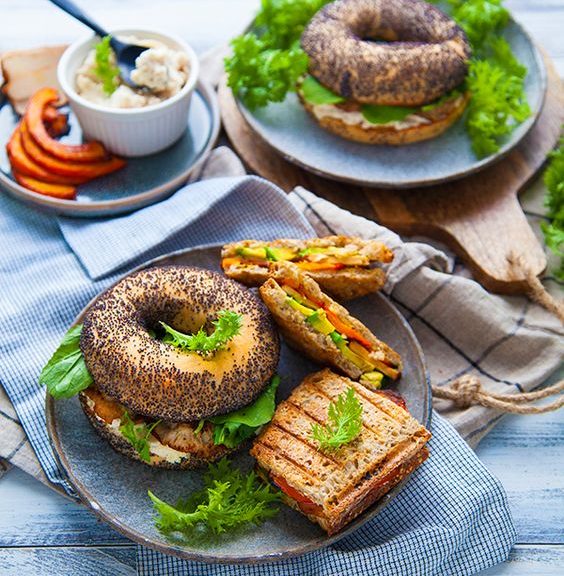 Vegan Vollkorn-Bagel mit Hummus